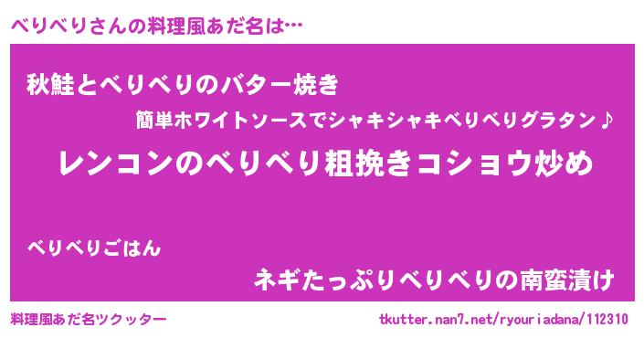| 女子向けラノベタイトル風あだ名 | 『べりべりなんてお断りですっ。』 |