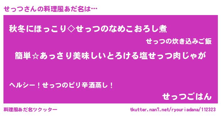 | 意味不明あだ名 | 『永久保存せっつ』『ヨモギ科せっつ属』 |