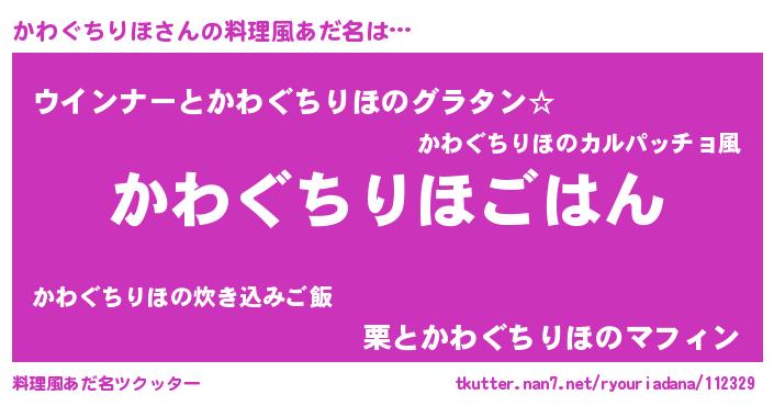 | ヘコむあだ名 | 『豆乳』『かわぐちりほ(笑)』 |