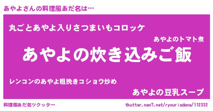 | ピコ太郎風あだ名 | 『アヤ次郎』『アア太郎』『アコ十郎』 |