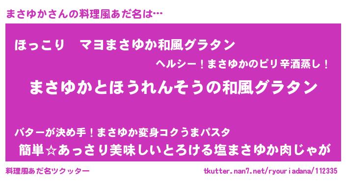 | ヘコむあだ名 | 『まさゆか(笑)』『まさふぇ~』 |