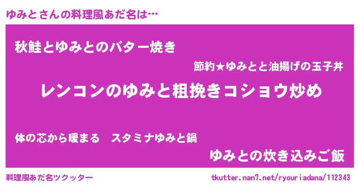 | 意味不明あだ名 | 『自称ゆみと』『永久保存ゆみと』 |