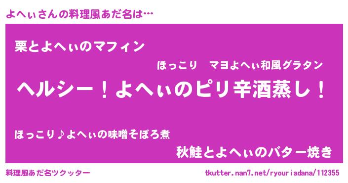 | 意味不明あだ名 | 『自称よへぃ』『永久保存よへぃ』 |