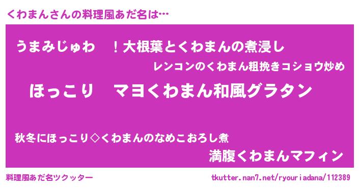 | ヒーロー風カッコイイあだ名 | 『仮面クワダー』『ウルトラくわまんマン』 |