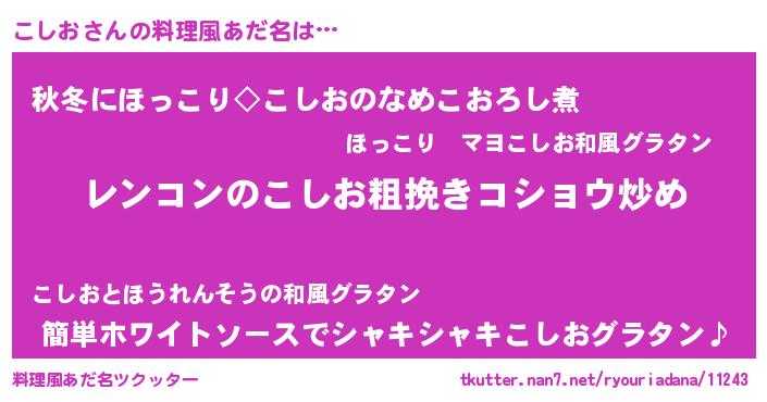 | 女子向けラノベタイトル風あだ名 | 『こしおなんてお断りですっ。』 |