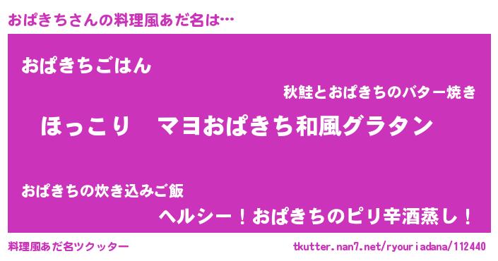 | 男性向けラノベタイトル風あだ名 | 『この素晴らしい世界におぱきちを!』 |