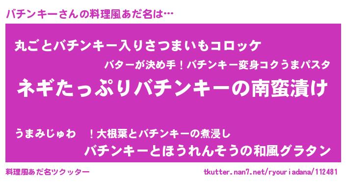 | ヘコむあだ名 | 『バチにー』『なまこ酢』『バチっぺ』 |