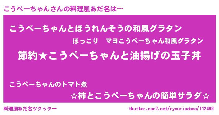 | 男性向けラノベタイトル風あだ名 | 『こうぺーちゃんの憂鬱』 |