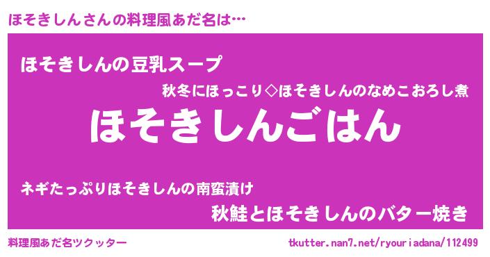 | 胡散臭い通販商品みたいなあだ名 | 『伝統あるサプリメント…その名も「ほそきしん」』 |