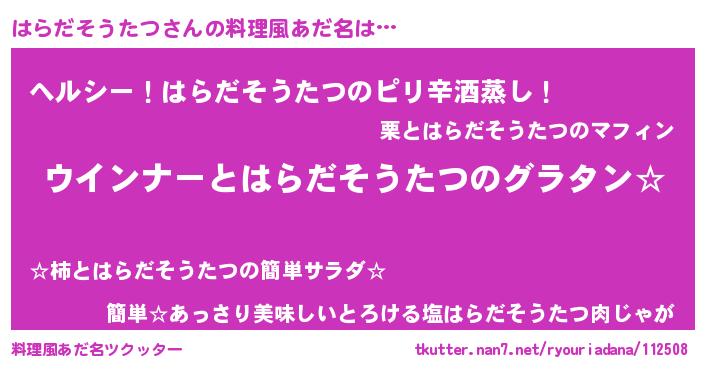 ヘコむあだ名 | 『なまこ酢』『はらだそうたつ(爆)』 |