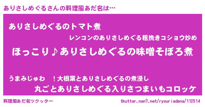 | 恥ずかしいあだ名 | 『プリティーありさしめぐる』『ありちん』 |