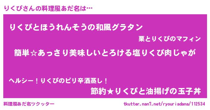 | 意味不明あだ名 | 『永久保存りくぴ』『もやし科りくぴ属』 |
