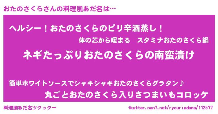 | 胡散臭い通販商品みたいなあだ名 | 『億万長者になれるブレスレット…その名も「おたのさくら」』 |