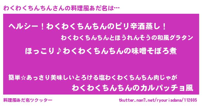 | 男性向けラノベタイトル風あだ名 | 『わくわくちんちんの憂鬱』 |