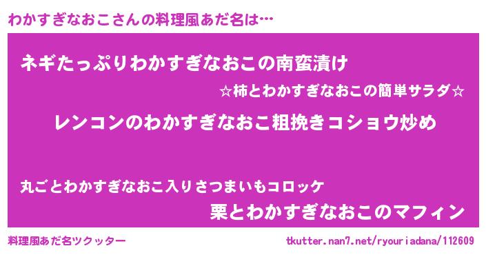 | 胡散臭い通販商品みたいなあだ名 | 『ガンによく効く高麗人参…その名も「わかすぎなおこ」』 |