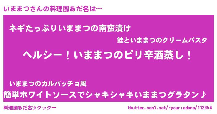 | 意味不明あだ名 | 『自称いままつ』『ペロリンいままつ』 |
