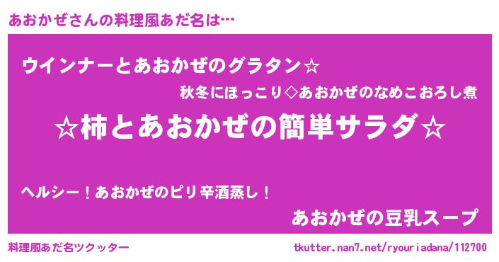 | 意味不明あだ名 | 『あおかぜフォーエバー』『自称あおかぜ』 |