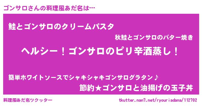 | 男性向けラノベタイトル風あだ名 | 『Re:ゴンサロから始める異世界生活』 |