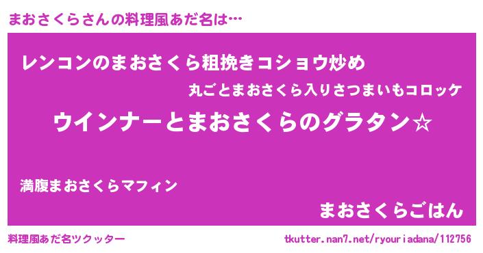 | ヘコむあだ名 | 『豆乳』『まおさくら(震え声)』 |