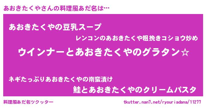 | ポケモン風あだ名 | 『アオキダネ』『ヒアオキタクヤ』 |