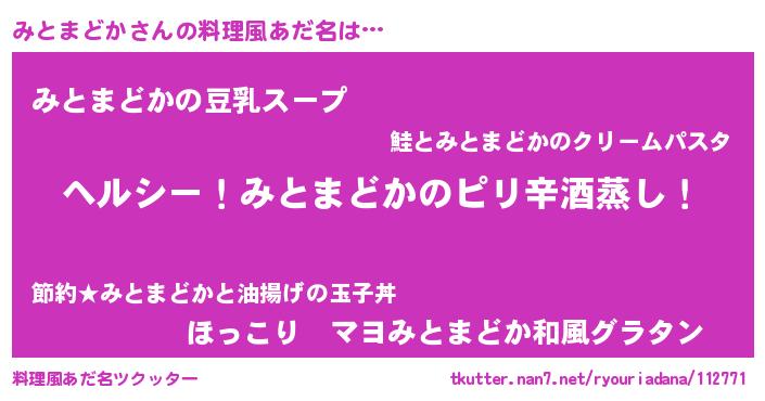 | 男性向けラノベタイトル風あだ名 | 『Re:みとまどかから始める異世界生活』 |