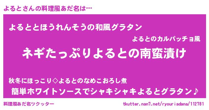 | 欧米人風あだ名 | 『マイケルよると』『トリンドルよると』 |