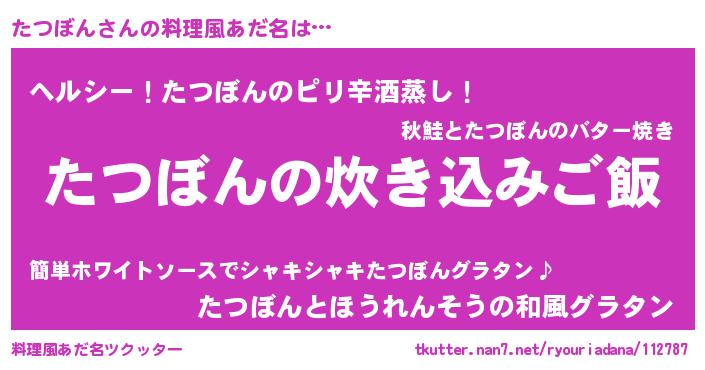 | 胡散臭い通販商品みたいなあだ名 | 『テレビで話題の高麗人参…その名も「たつぼん」』 |
