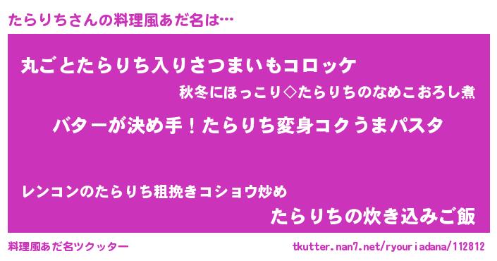| ヒーロー風カッコイイあだ名 | 『愛の使者たらりち』『仮面タラダー』 |