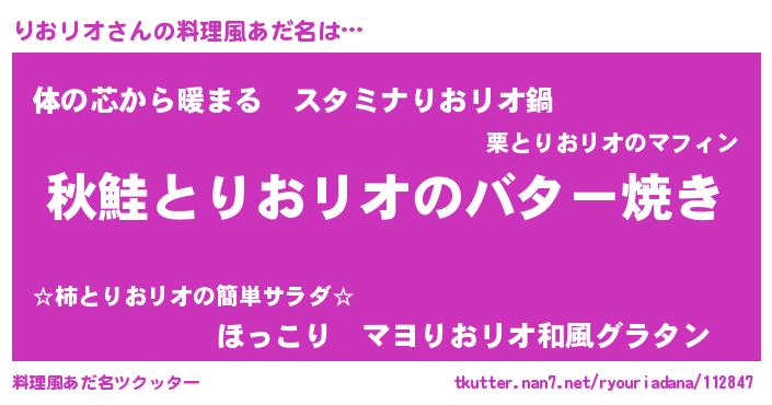 | ヒーロー風カッコイイあだ名 | 『ネオリオリオ』『ウルトラりおリオマン』 |