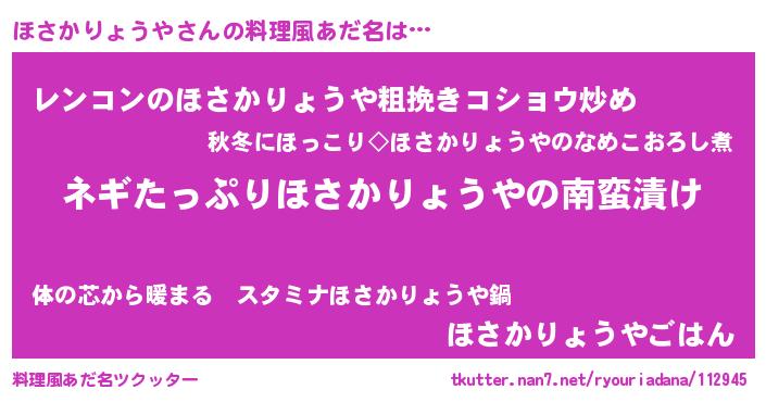 | 男性向けラノベタイトル風あだ名 | 『ホサカリョウヤアートオンライン』 |