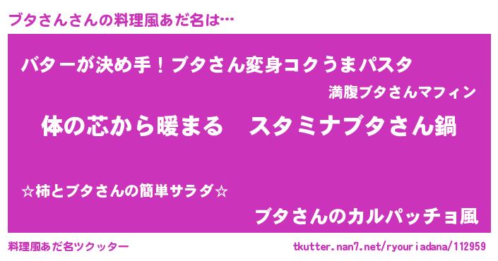 | ファンタジー風あだ名 | 『エターナルブタサンー』『クインブット』 |
