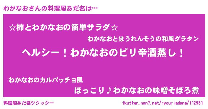 | ヘコむあだ名 | 『わかもー』『わかなお(爆)』『牛乳』 |