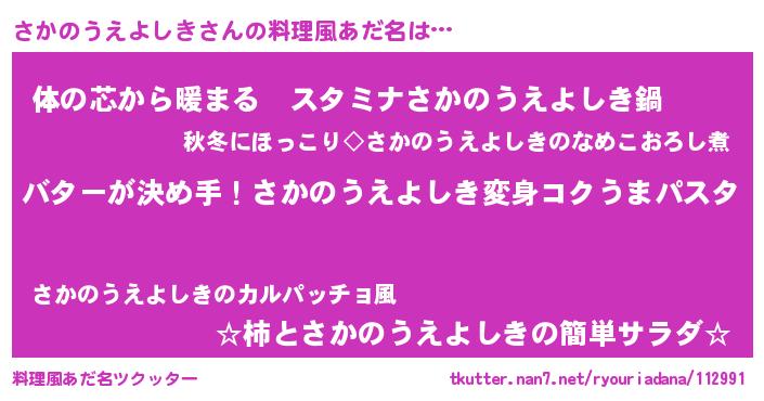 | 女子向けラノベタイトル風あだ名 | 『さかのうえよしき恋絵巻』 |