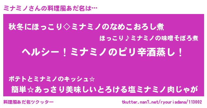 | ヘコむあだ名 | 『ミナミノ(震え声)』『ミナにゅー』 |