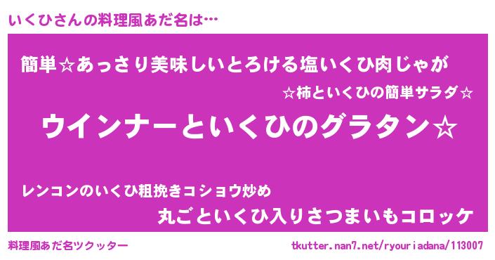 | ヒーロー風カッコイイあだ名 | 『ウルトラいくひマン』『ネオイクヒ』 |