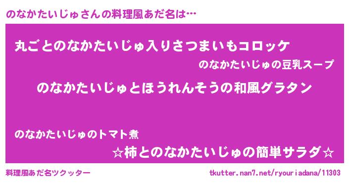 | 女子向けラノベタイトル風あだ名 | 『のなかたいじゅの玉の輿計画!』 |