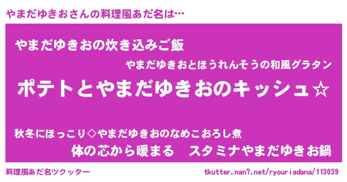 | 欧米人風あだ名 | 『ウサインやまだゆきお』 |