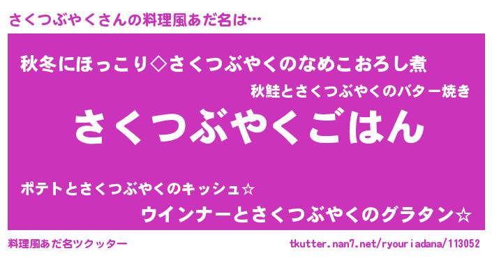 | ヘコむあだ名 | 『つくし』『さくつぶやく(笑)』 |
