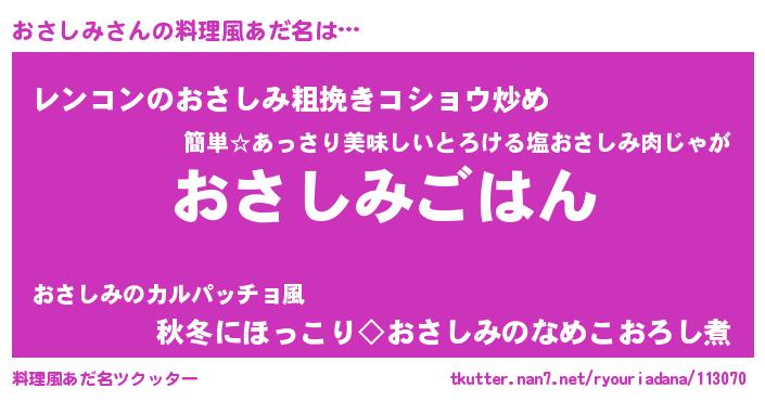 | 胡散臭い通販商品みたいなあだ名 | 『テレビで話題のアガリクス…その名も「おさしみ」』 |