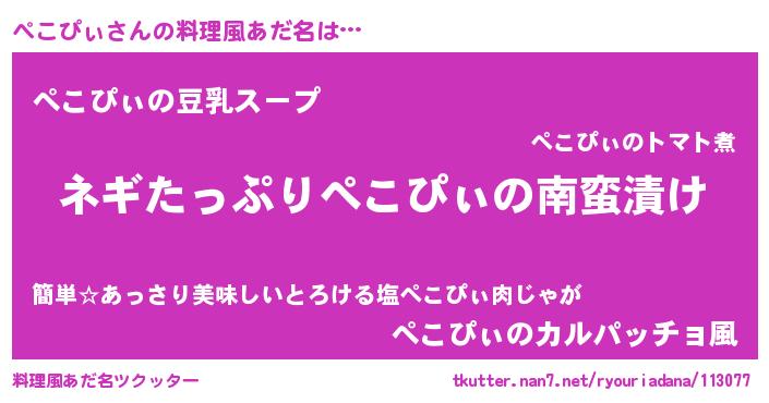 | 男性向けラノベタイトル風あだ名 | 『ペコピィアートオンライン』 |