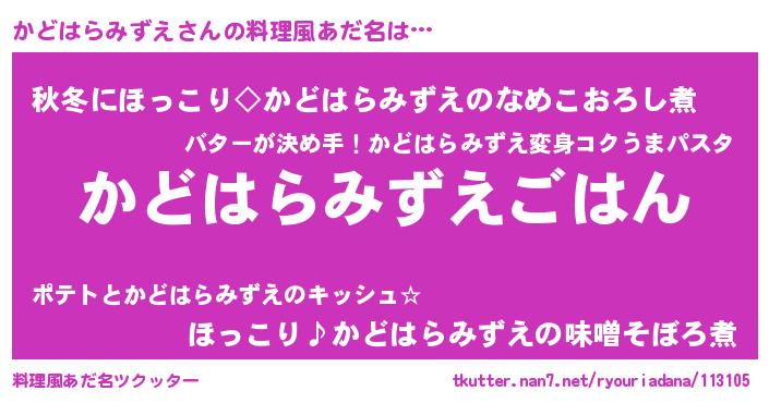 | 肩書あだ名 | 『かどはらみずえ上級大将』 |