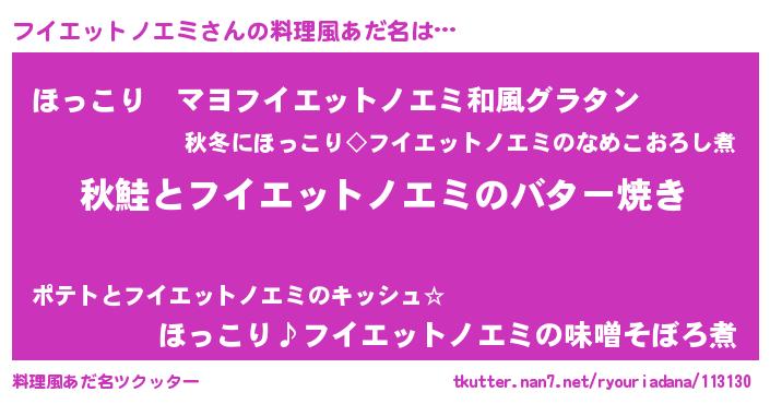 | 男性向けラノベタイトル風あだ名 | 『フイエットノエミという概念が存在しない退屈な世界 』 |
