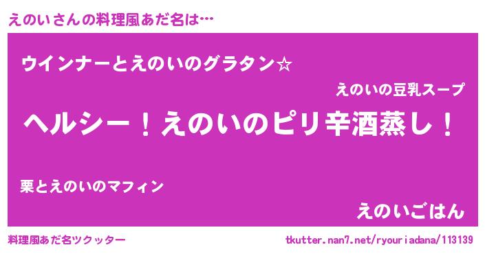 | 男性向けラノベタイトル風あだ名 | 『Re:えのいから始める異世界生活』 |