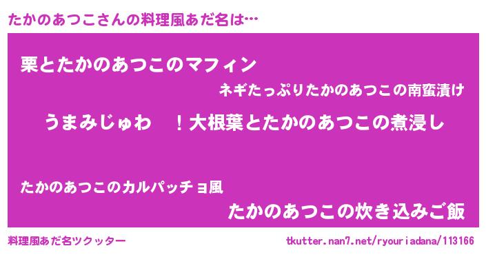 | 意味不明あだ名 | 『たかのあつこフォーエバー』 |