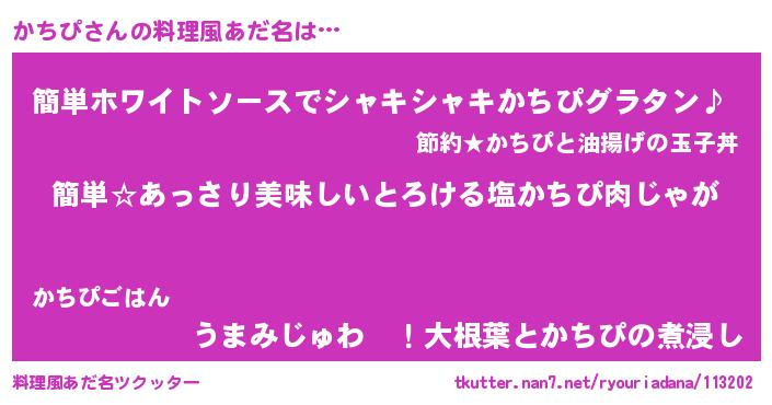 | ヘコむあだ名 | 『かちぴ(笑)』『かちっ子』『豆乳』 |
