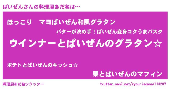 | 意味不明あだ名 | 『ぱいぜんフォーエバー』 |