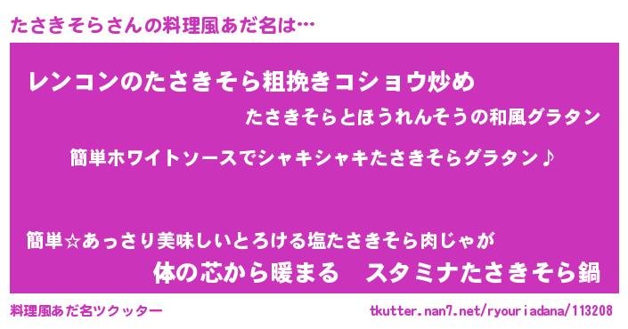 | 肩書あだ名 | 『たさきそら班長』『たさきそら総統』 |