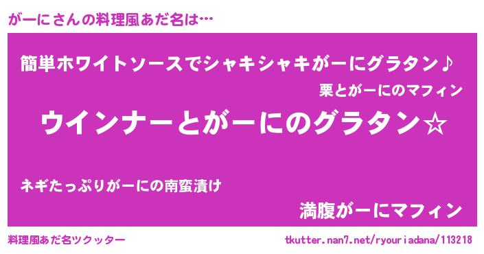| 意味不明あだ名 | 『がーにフォーエバー』『永久保存がーに』 |