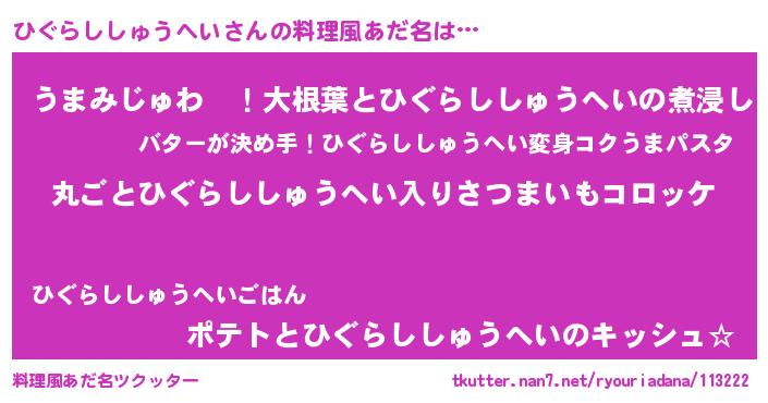 | 意味不明あだ名 | 『住所不定無職ひぐらししゅうへい(10歳)』 |