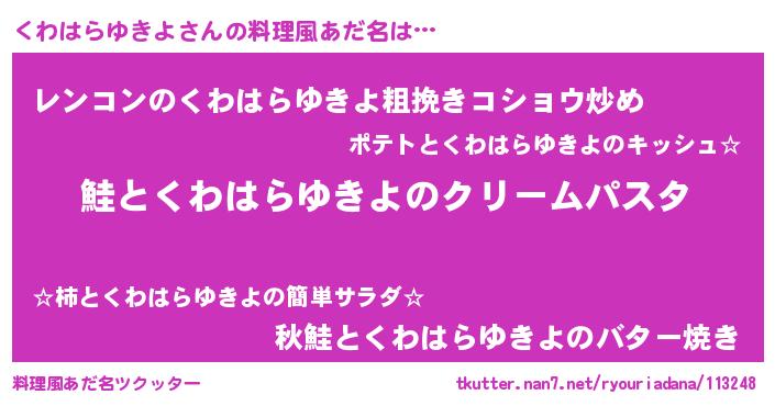 | 男性向けラノベタイトル風あだ名 | 『ノーゲーム・ノークワハラユキヨ』 |